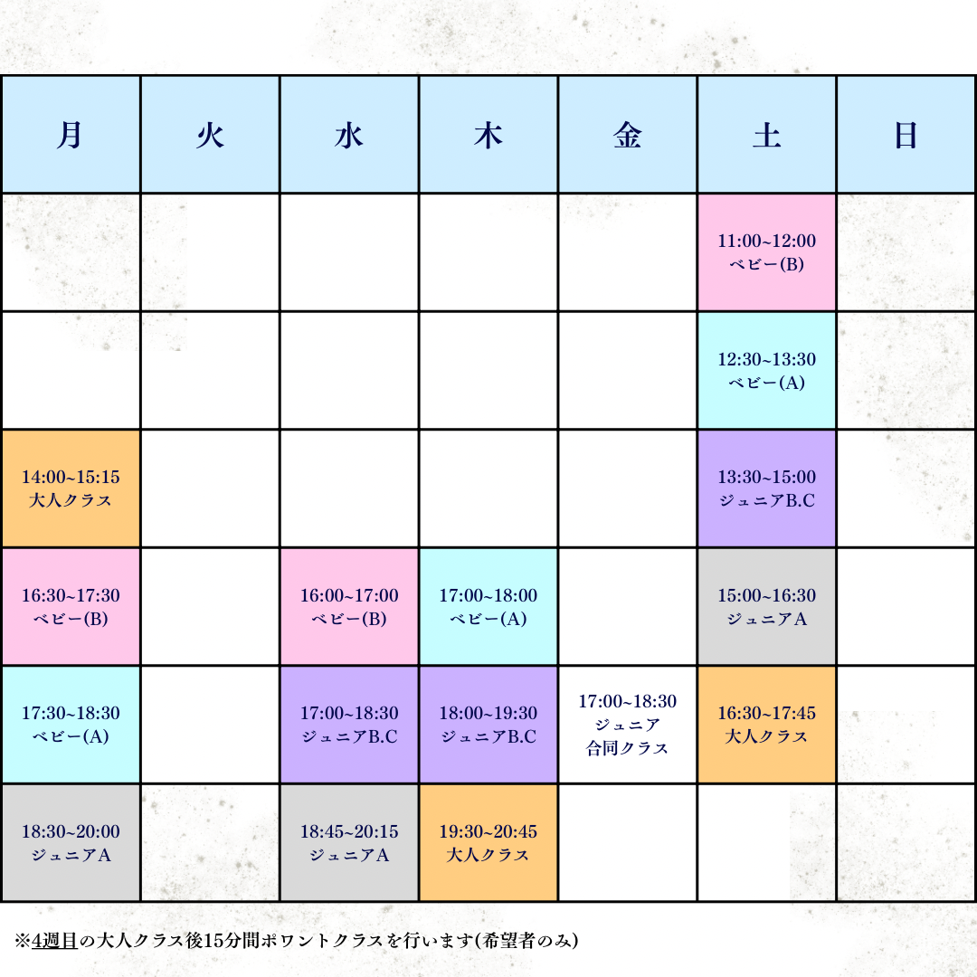 ☆年齢に限らず、レベルやレッスン回数、取組む姿勢などに応じて、飛び級、クラス変更など判断いたします。(要相談)